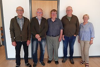 Præsident Laurids Bilberg, vicepræsident Jens Kongsgaard, sekretær Finn Kjeldal, menigt medlem Hans Åge Høj og skatmester Gerda Kongsgaard udenfor…